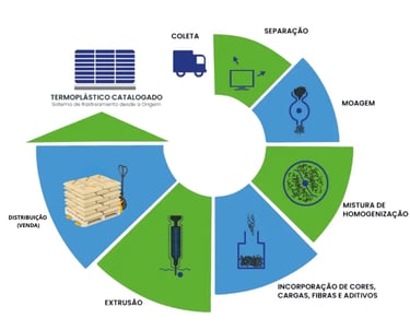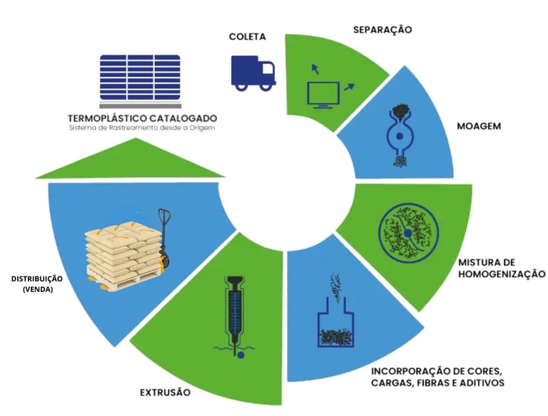 Após a aquisição da sucata plástica industrial, o material passa por criteriosa seleção, moagem e, em seguida, extrusão.